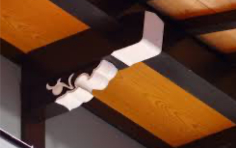 在支撐日本民宅屋簷的部分,施以雲形裝飾的斗拱。